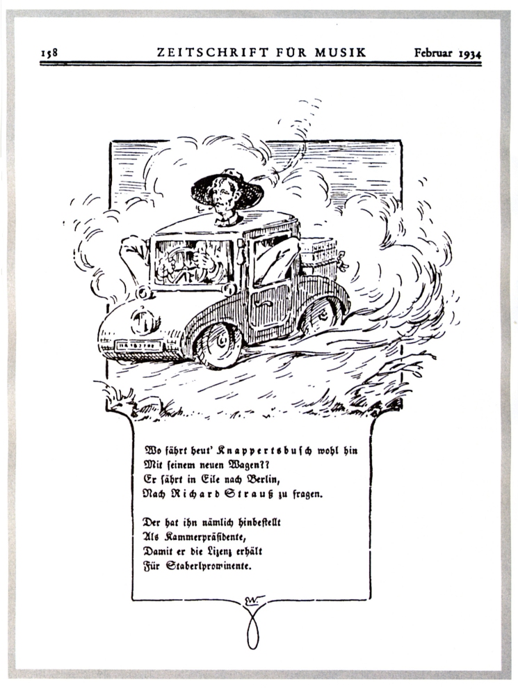Der Hüne Knappertsbusch wird hier symbolhaft in ein Kleinauto